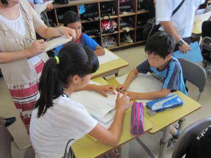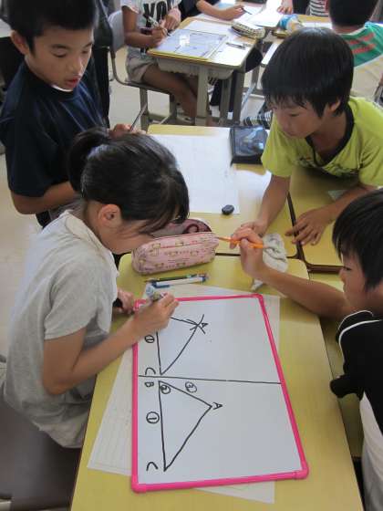 7/11(金)の6時間目に、5年1組で算数の研究授業が行われました。担任のO先生のこれまでの実践が、今年の秋に、瀬戸市の研究成果として発表されるため、本校以外の先生も大勢参観に来られていました。