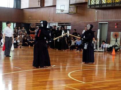 私(校長)と養護教諭のさとえ先生は、光陵中学校でおこなわれた剣道の大会に役員として参加しました。