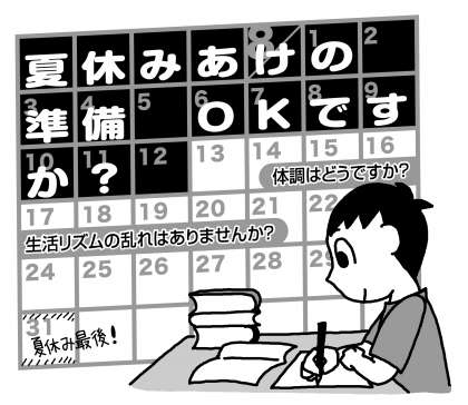 まだまだ暑さが残っていて、学校で一日過ごすのは大変です。2学期の始めは「学校行きたくないな」「だるいな」「頭が痛いな」と訴えて保健室へ来る子も増えるのです。