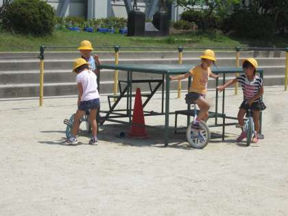 竹馬や一輪車は、子どもたちが放課を利用して自主的に練習に取り組んでいます。大変ありがとうございます。