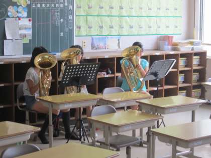 金管バンド部 公開日 2014/07/23 更新日 2014/07/23 日々のページ 金管バンド部は、「も〜やっこ祭り」で演奏する曲の練習に取り組んでいました。「も〜やっこ祭り」が終わったら、今度は、運動会に向けての練習に取り組みます。 いいね(0)
