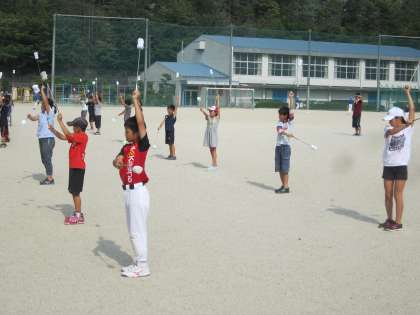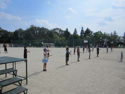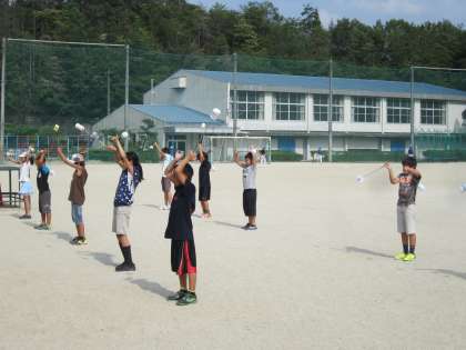 明日は「も〜やっこ祭り」が行われます。5年生が野外学習で演技したトーチトワリングを地域の方々にもお見せする機会です。子どもたちは、夏休みの間に登校し、トーチトワリングの最終確認をしていました。