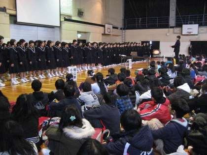 まず、中学1年生の先輩が学校紹介と合唱をしてくれました。小学校の時に知っている先輩の成長した姿(入退場の時の静けさや清々しい歌声など)にとても驚いていました。