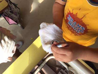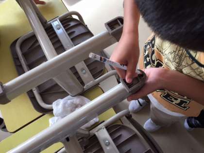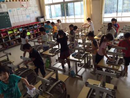 グランドの土を落としていました。 公開日 2015/09/29 更新日 2015/09/29 1年生 運動会でイスを外に出したので、イスに付いている土を一生懸命に落としていました。先のとがった物を使って丁寧に取り組んでいる姿は本当に微笑ましいです。 いいね(0)