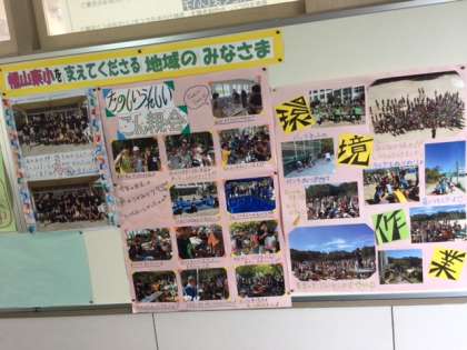 掲示板にはさまざまな仕掛けがしてあります。 公開日 2015/09/30 更新日 2015/09/30 日々のページ 職員室前の掲示板では、「学校を支えてくださる地域の方」を紹介しています。掲示物を作ることが得意な養護教諭の先生が、写真にコメントを入れたり、立体的にしたりと、さまざまな工夫・仕掛けをしています。環境整備作業の時に撮影した集合写真にもちょっとした工夫がされています。 10月15日の授業参観や学校へお越しの際は、ぜひご覧ください。 いいね(0)