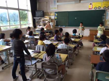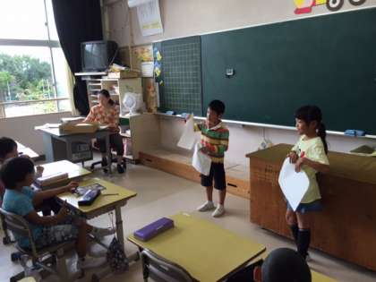 2年3組では「大すきなものを、教えたい」という授業で、順番に発表をしていました。発表をする児童の声の大きさや内容も大変立派でした。また、聞く姿勢や質問をする人もきちんとした態度で感心させられました。