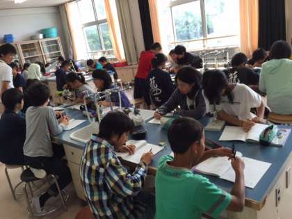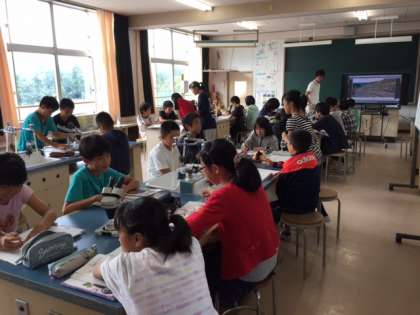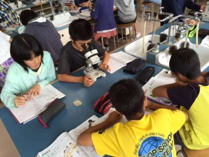 双眼顕微鏡を使った授業