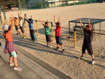 明後日(18日)の区民運動会で準備体操をサッカー部の人たちが担当してくれます。きちんとしたラジオ体操を披露して、運動会を盛り上げられるようしっかりと練習しています。