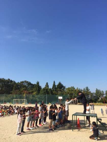 朝礼が行われました。 公開日 2015/10/19 更新日 2015/10/19 日々のページ 青空の下で、朝礼を行うことができました。校長先生の話の後には、原山カップで男女ともに優勝したバスケット部の表彰が行われました。 いいね(0)
