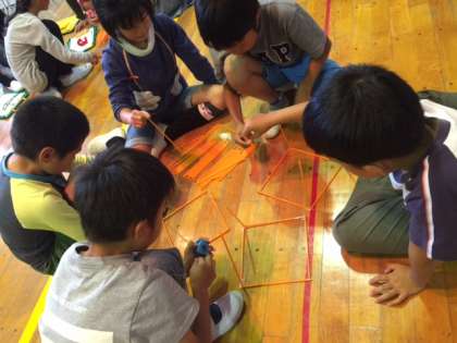 建設と環境の授業について その2 公開日 2015/10/21 更新日 2015/10/21 4年生 限られた10分間でしたがストローを使った課題に対しては、大変な盛り上がりで、どの班も真剣そのもの。そして、最後には先生が事前に作っておいた見本作品を見てもらいました。 いいね(0)
