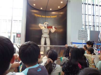 トヨタ自動車工場の見学1 公開日 2015/10/21 更新日 2015/10/21 5年生 10月21日に社会科で学習している「自動車を作る工業」の単元でトヨタ会館とトヨタ組み立て工場とトヨタ博物館を見学してきました。初めに、トヨタ会館で自動車の生産、環境、歴史などを楽しく学びました。ロボットのバイオリン演奏も見学できました。外国人もたくさん見学に来ていたので、積極的に話しかける姿を見ることができました。 いいね(0)