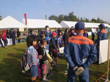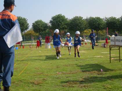 24日に市民公園で、初期消火技術を競う消火技術競練会がありました。幡山東小学校からは、5年生児童4名が出場しました。