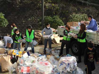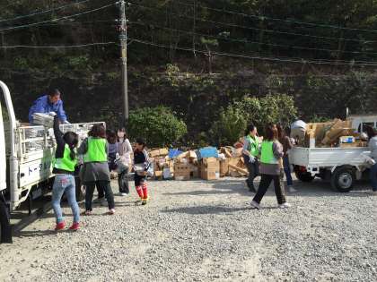 天候にも恵まれ、第3回の廃品回収を終えることができました。当番の5年生の参加もあり、たくさんの回収物をあっという間に積み込むことが出来ました!