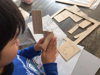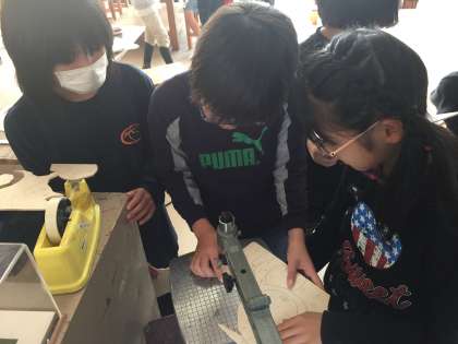 5年生の図工の時間に木材を糸のこで切断していました。直線や曲線があり、なかなか思い通りにはいかないようでしたが、楽しく作業していました!