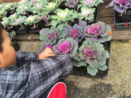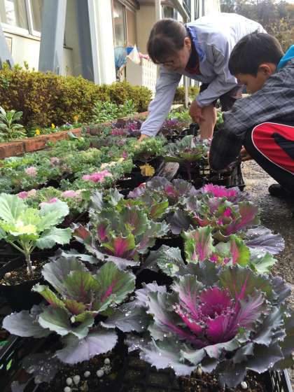 12月13日(日)に八幡社の山楽駐車場で販売するため、5,6組が葉牡丹を育てています。1鉢100円で販売し、その収益は5,6組の教育活動費となります。ご理解をいただき、当日はぜひ足を運んでください。よろしくお願いします。