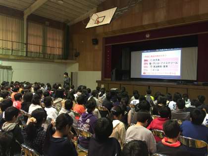 テレビに出演されているときと同じように、やさしい語り口で子どもたちに話しかけてくれました。天気の話だけではなく、テレビの裏話や「どうしてお天気キャスターになったのか」など、子どもたちの将来に役に立つような話をしていただきました。興味深い動画やユニークなクイズを交えての話だったので、あっという間の50分でした。