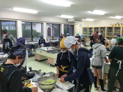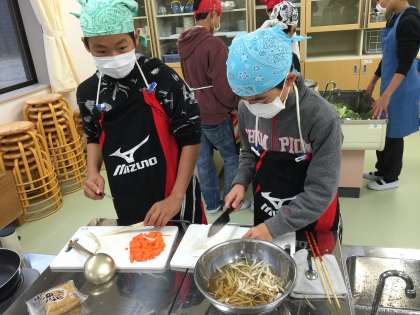 6年生の調理実習 その1 公開日 2015/12/06 更新日 2015/12/06 6年生 6年生が自分たちでメニューを考え、自分たちで購入した食材で調理実習を行いました。和気あいあいと、楽しそうに調理している様子に思わず笑顔です! いいね(0)