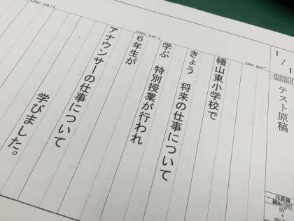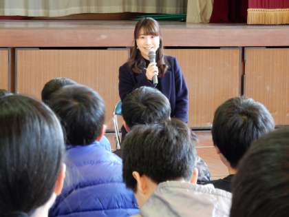 テレビ局のアナウンサーに来ていただきました。 その2 公開日 2016/02/17 更新日 2016/02/17 6年生 6時間目は事前にとったアンケートをもとに、「アナウンサーを目指した理由」「福島で働いている理由」などを、6年生に話をしてくれました。 また、長江さんの指導による声の出し方も体験することができ、充実した1日となりました。本当にありがとうございました。 いいね(0)