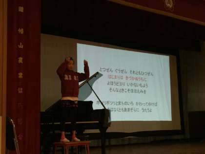 今週は音楽集会でスタートしました。音楽委員が中心となって準備を進め、体育館に元気な歌声が響きました。指揮はもちろんですが、伴奏も音楽委員の人たちが担当する場面もあり、子どもたちで作り上げた集会でした。