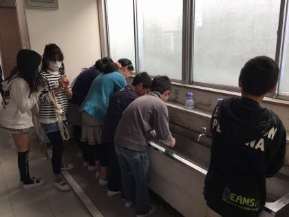 インフルエンザで欠席している児童はいませんが、30分休みの終わりには手洗い、うがいが行われ、チェック票に記録することになっています。チェック票に記入をするから手洗い、うがいをするのではなく、習慣になるよう声をかけていきます!
