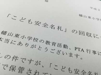今日、明日にはお手元にプリントが届くと思いますが、「こども安全名札」を有効利用するため回収させていただきたいと思います。ご家庭にあれば、お子さんを通して担任の先生に渡してください。ご協力をよろしくお願いします!!