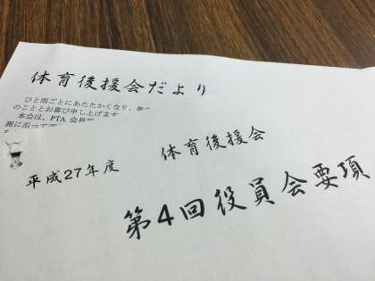 昨日の夜、体育後援会が開催されました。学校で活動している4つの部活動のサポートや子どもたちが楽しめるような環境づくりについて話し合いが行われました。本当にお忙しい中、ありがとうございました。