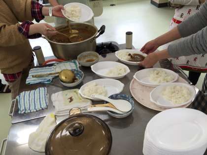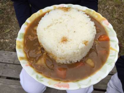 お昼は保護者の方が心を込めて作ってくださっカレーです。心も体も温まり、大満足です!