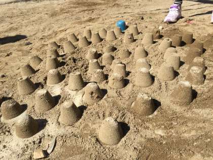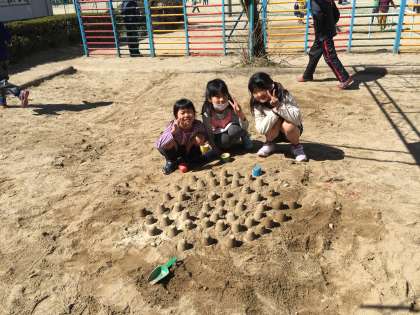 砂場の作品 公開日 2016/03/17 更新日 2016/03/17 日々のページ 30分放課に砂場で一生懸命に作業している人たちがいたので近づいてみたら、なんだか不思議な作品ができあがっていました。今日はとても暖かいので、外にいても気持ちがいいようです。 いいね(0)