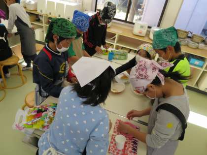 木曜日に4年2組が炊飯器ケーキ作りをしました。いろいろなトッピングを使い、オリジナルのケーキが完成しました。今年お世話になった先生方にもケーキを渡しに行きました。食べ終わった後の片付けもみんなで協力して手際良く行うことができました。