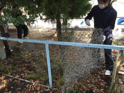うさぎ小屋の隣にあるフェンスが老朽化していましたので、撤去していただきました。これで子どもたちも安全に遊ぶことができます。ありがとうございました!