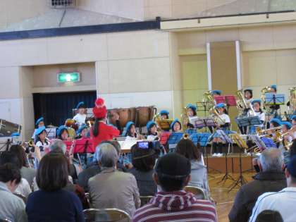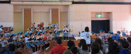 子ども達は、中学生の迫力ある演奏を一生懸命に聴いていました。また、中学生と一緒に演奏したときには、たくさんの笑顔があふれました。