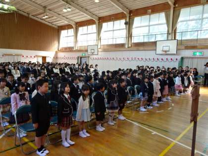 入学式の様子 その1 公開日 2016/04/06 更新日 2016/04/06 1年生 天候にも恵まれ、28年度の入学式が行われました。子どもたちは緊張しながらもたくさんの保護者に祝福され、本当にうれしそうでした。元気に、そして、楽しく小学校に登校し、笑顔で下校してほしいと思います。お忙しい中、来校していただき、本当にありがとうございました。 いいね(0)