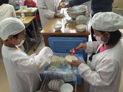 給食が始まっています。 その1 公開日 2016/04/13 更新日 2016/04/13 給食室より 昨日から1年生を除く学年の給食が始まっています。白衣に着替え、協力して準備をしています。少しでも早く準備をして、ゆっくり楽しく給食の時間を過ごしてほしいと思います。 いいね(0)