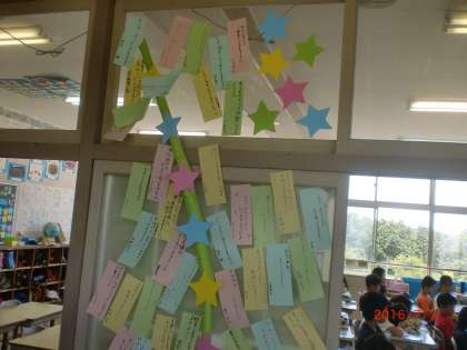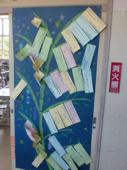 短冊にはみんなのお願い事がたくさん貼ってありました。