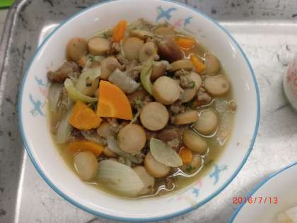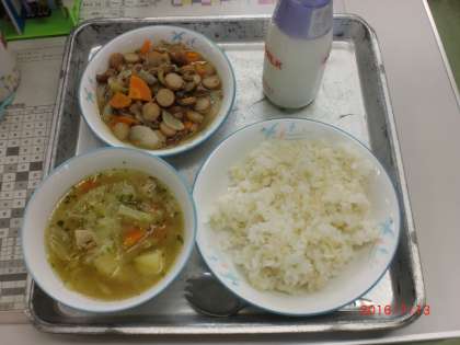 今日の給食(ブラジル料理) 公開日 2016/07/12 更新日 2016/07/12 給食室より 今日の給食はオリンピックにちなんでブラジルの料理が 出ました。名前は「フェジョアーダ」といって、ブラジルの 国民食ともいわれるものです。大きめの豆を煮こんでみんなに 食べやすくしていました。ごはんの上にかけて食べました。 とてもおいしかったです! いいね(0)
