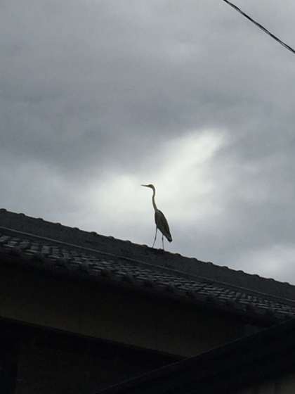 登校を見守るために、手押し信号のところへ行くと、子どもたちが「あっ、大きな鳥があの屋根の上にいる!」って教えてくれたので、思わずパチリ。勇敢な姿でしたが、どんな鳥だったのでしょうか。