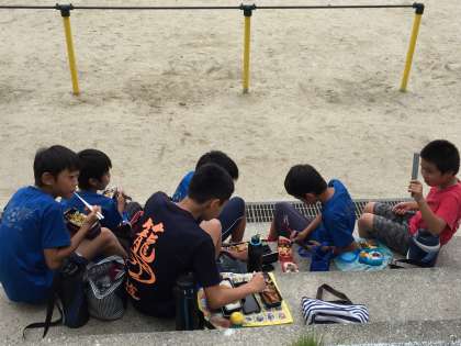 天気が良かったので、グランドなどで食べている人たちもいました。みんな本当にうれしそうです!