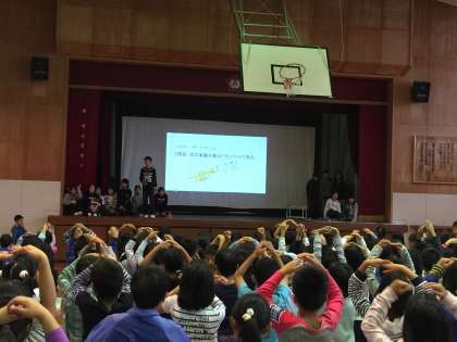 音楽集会 公開日 2016/10/17 更新日 2016/10/17 日々のページ 今週は音楽集会からスタートしました。クイズ、そして、全校合唱と元気な声が体育館に響きました。急に気温が下がり、体調を崩している人もいますが、健康に留意して過ごしてほしいと思います。 いいね(0)
