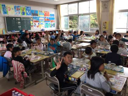 10月の上旬に台風の関係で給食がカットされました。しかし、そのときに無くなったメニューで楽しみにしていた「梨ゼリー」が今日の給食で出されました。子どもたちもうれしそうでした。(写真は3年1組の様子です。)