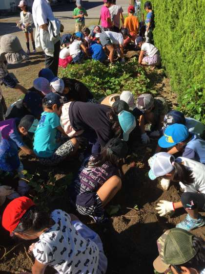 芋掘り 2年生 その1 公開日 2016/10/18 更新日 2016/10/18 2年生 1学期に子どもたちが植えた芋が育ちましたので、芋掘りを行いました。青空の下、この時期にしては暑いぐらいの天候でしたが、子どもたちからは歓声があがっていました。とってもいい経験ができたと思います。 後日、調理をして自分たちはもちろんですが、1年生にもプレゼントする計画を立てています。 いいね(0)