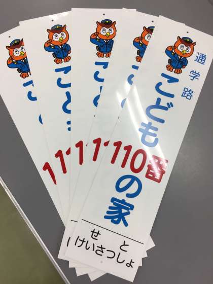 瀬戸警察署へ行き、こども110番のプレートをいただいてきました。今後は危険箇所を取りまとめ、関係機関にお願いすると共に、こども110番として協力してくださったところへお礼に出かけます。安全部の方、本当にありがとうございます。