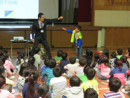 火曜日1年生は体育館でALSOKの方々をお招きし、不審者から自分の身を守るための約束事について学びました。「いかのおすし」という合言葉で不審者にあったときの対処法を教えていただき、実際にALSOKの方が不審者になって実践する場面もありました。1年生は最後までしっかりと話を聞くことができました。今後万が一に備えて学校でもまた学習していきたいと思います。