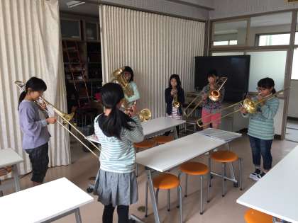 休み時間に金管バンド部が。 公開日 2016/11/02 更新日 2016/11/02 部活動 2時間目と3時間目の間は、30分の休み時間があります。その時間に金管バンド部が自主練習をしていました。意欲的な姿勢はすごいです! いいね(0)