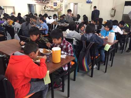 東大寺を出発し、バスにゆられて法隆寺に到着しました。ボリュームのあるカツカレーですが、みんな美味しそうに食べています。このあと法隆寺へと向かいます。日程も残り少しです。いい思い出となるよう先生たちも見守っています。