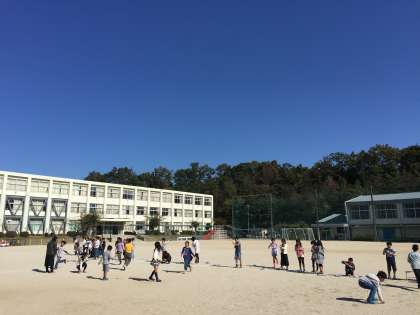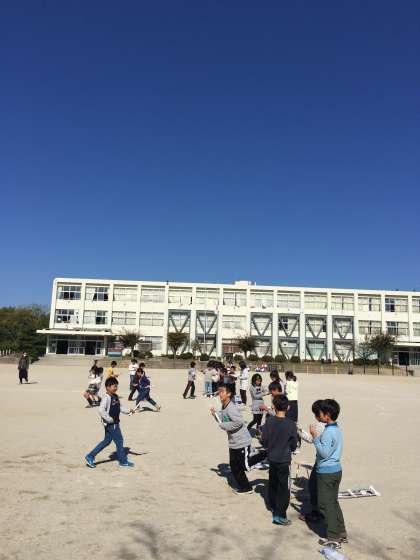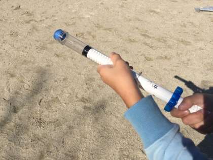 4年2組が理科の授業で、空気鉄砲を使っていました。天気も良く、「ポン、ポン」という音が心地いいです。本当に楽しそうです!