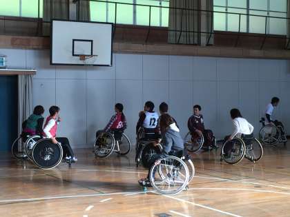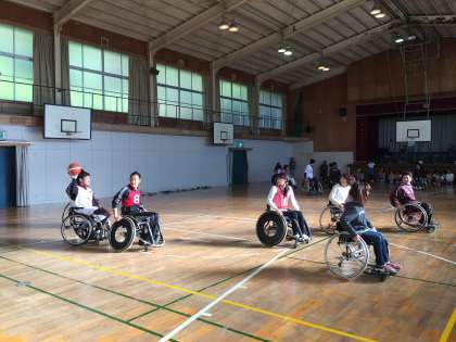 車いすバスケット その2 公開日 2016/11/09 更新日 2016/11/09 地域とともにある学校 せっかくたくさんの保護者に来校していただきましたので急遽、「先生 対 保護者」のゲームを設定しました。子どもたちの応援もあり、大盛り上がりでした!! いいね(0)