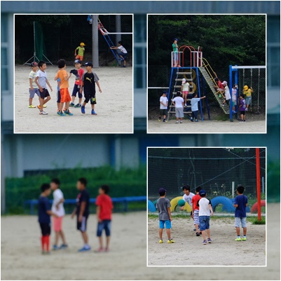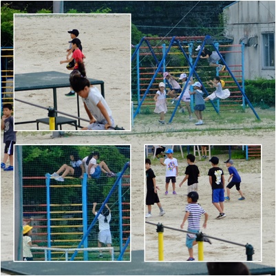 登校するとき,髪が濡れるほどの汗をかいている子もいました。大人だったら一休みとなりますが,さすが子どもたちです。学校に着くと運動場へ駆け出る子の多いこと。サッカー,バスケ,遊具・・・,いつもの休み時間の光景が見られました。