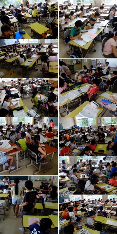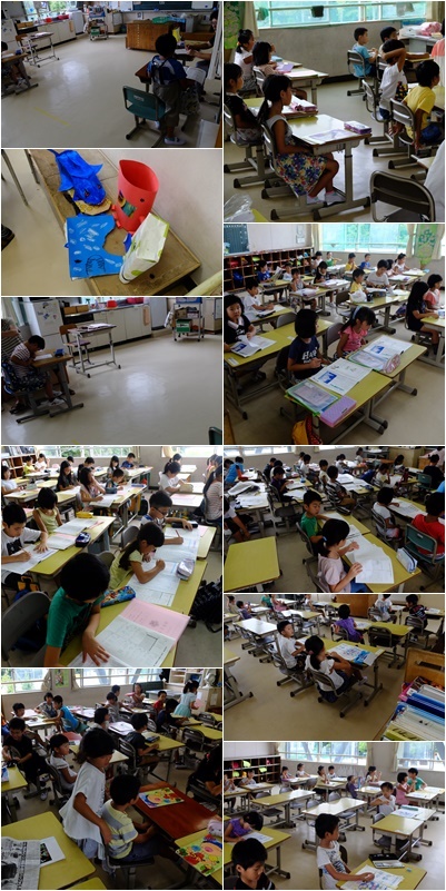 夏休みの出校日,あわただしいです。課題のマルつけ,作品や通知表ファイルの回収,応募作品のチェック・・・,合間を見て,夏休みの思い出の発表と,やることが山ほどあります。あっという間に時間が過ぎていきました。
