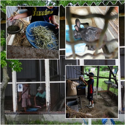 午前9時前,飼育委員の子たちが,ウサギ小屋の掃除を始めていました。新しい藁を敷き,餌を準備し,水をかえます。床はほうきで掃いてきれいにします。よく働いてくれます。休み中もうさぎたちが元気でいられるのもこのおかげです。ありがとう。
