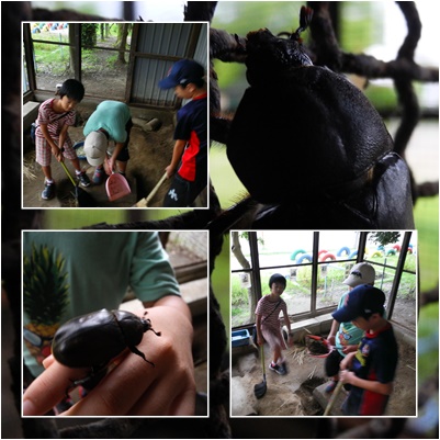 掃除を始める前,運動場のわきの木にいたメスのカブトムシをつかまえました。